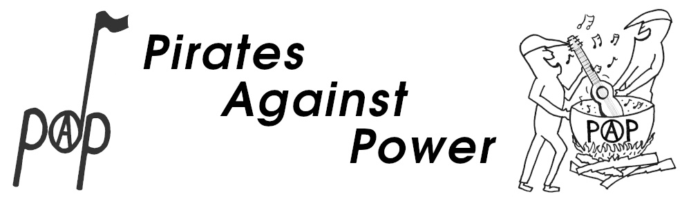 In bewegingen die winnen zijn mensen aan het zingen! Met dat idee brachten we Your Local Pirates op gang. Het idee was nooit alleen maar: een bandje vormen, en dat is dat. Vanaf het begin af aan speelde ook de gedachte mee om het zingen in en om acties een zetje geven, muziek maken die ook daadwerkelijk in de actie tot klinken gebracht zou worden. (…) We willen daar een vervolg aan geven, en de grenzen van Your Local Pirates – een vast muziekmakend tweetal – te buiten treden. Vandaar: Pirates Against Power, oftewel PAP!